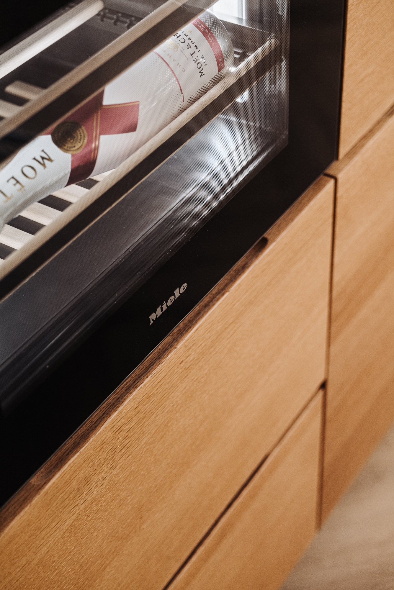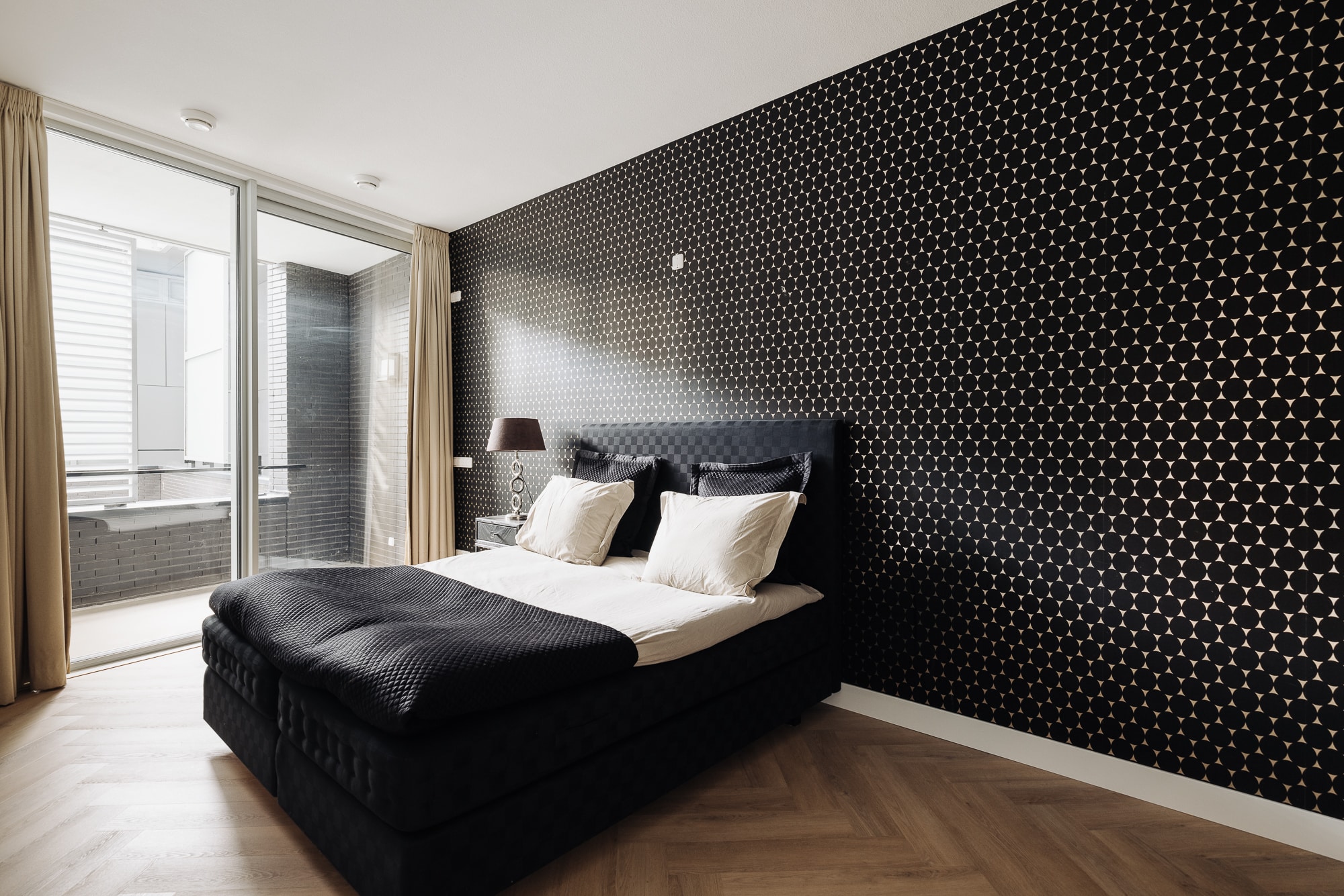 As you approach the home, you cannot help but be struck by the enormous, 4.5m glass facade. The apartment is unique due to its extraordinary layout . The combination of the soaring ceiling (approx. 3.5m) on the main floor and the quirky distribution of the total floorspace over three levels lend this property the look and feel of a loft. Something that is rarely seen on Zuidas. The mezzanine at the front of the home is no less that 6.5 meters tall for the ultimate luxury experience. The living space is at the rear and features an open-plan kitchen with a chef’s island and lovely breakfast bar plus a full range of Miele and Smeg appliances, including a wine climatizer. Of course, there is also plenty of room for a dining table and a large sofa from where you have an unobstructed view of your own terrace, which is off the building’s courtyard garden and Boelegracht. There is another room off the living space, which can serve as a bedroom/nursery as well as a study or playroom.