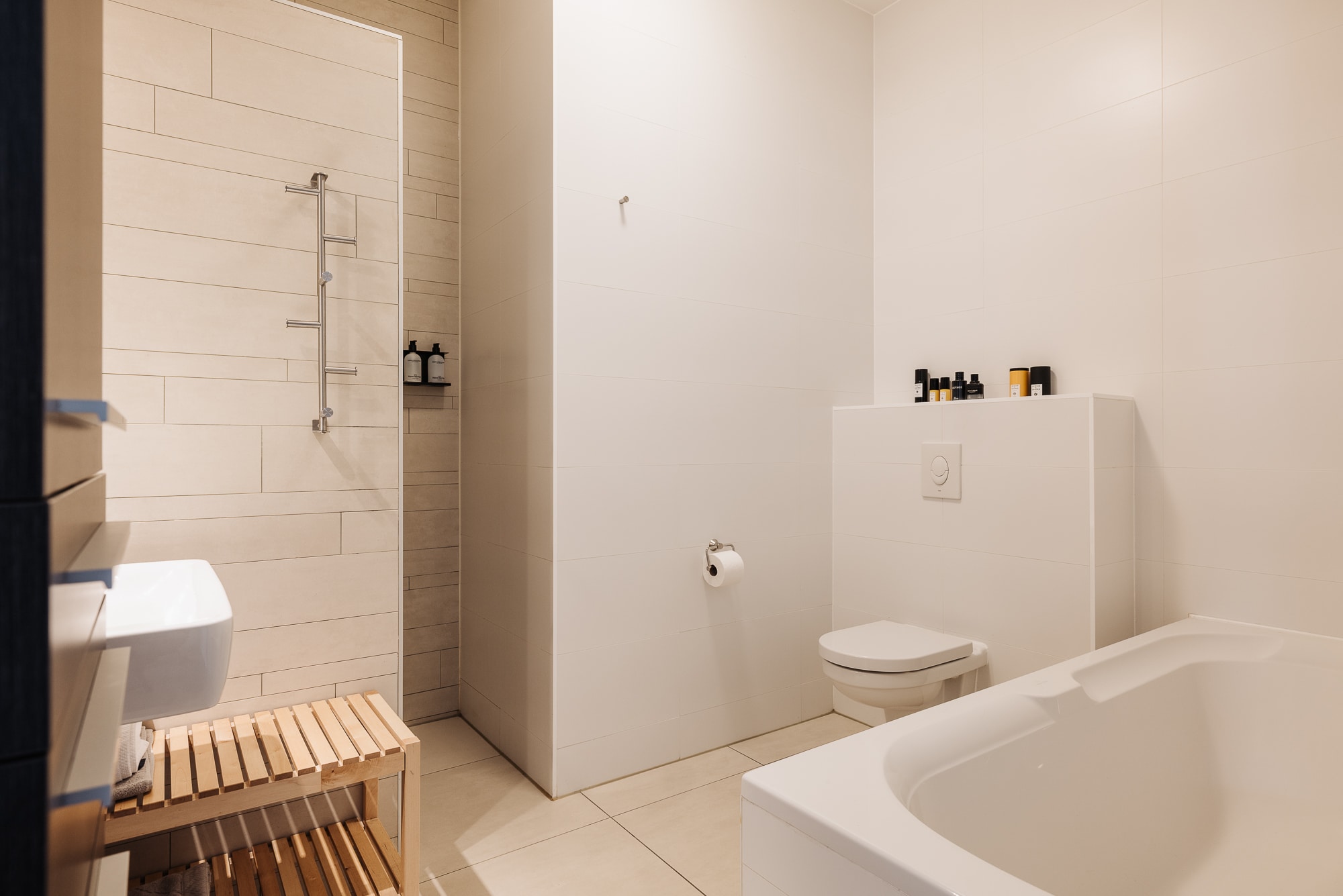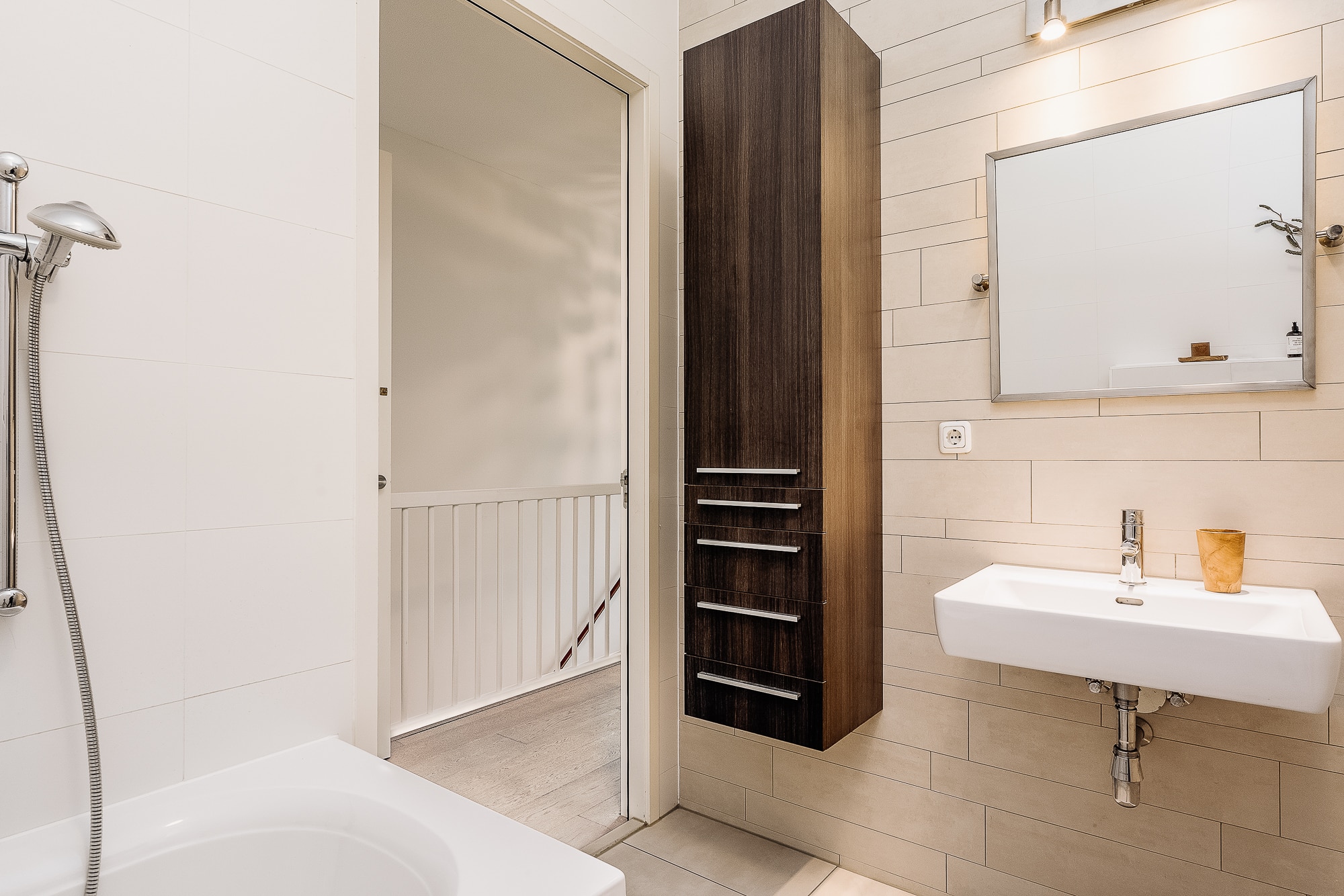 The Master Bedroom with a private bathroom is situated on the 1st floor. The pinnacle of luxury: a full floor (approx. 30 sqm) all to yourself to sleep, bathe and add a walk-in closet or a private office.. There is also a second outdoor space off this level. The bathroom is spacious and modern and is fitted with a bathtub and a separate walk-in shower. This level also features a separate entrance, so that you can access the home from ‘Miles Building’ – which may come in handy especially because the elevator from the parking garage stops here.