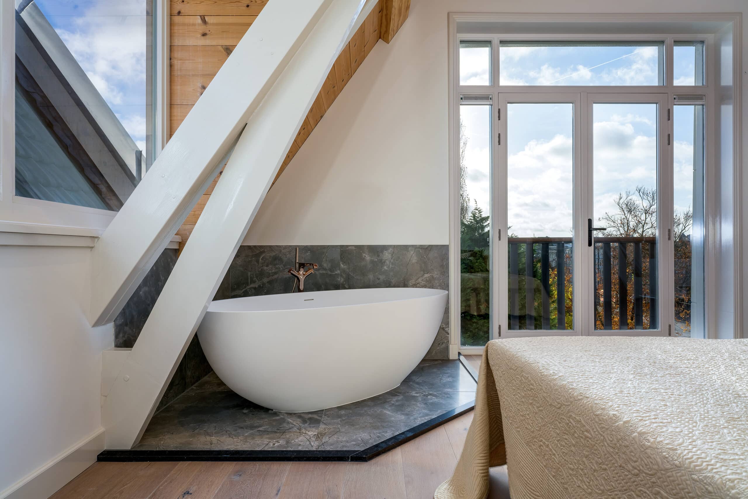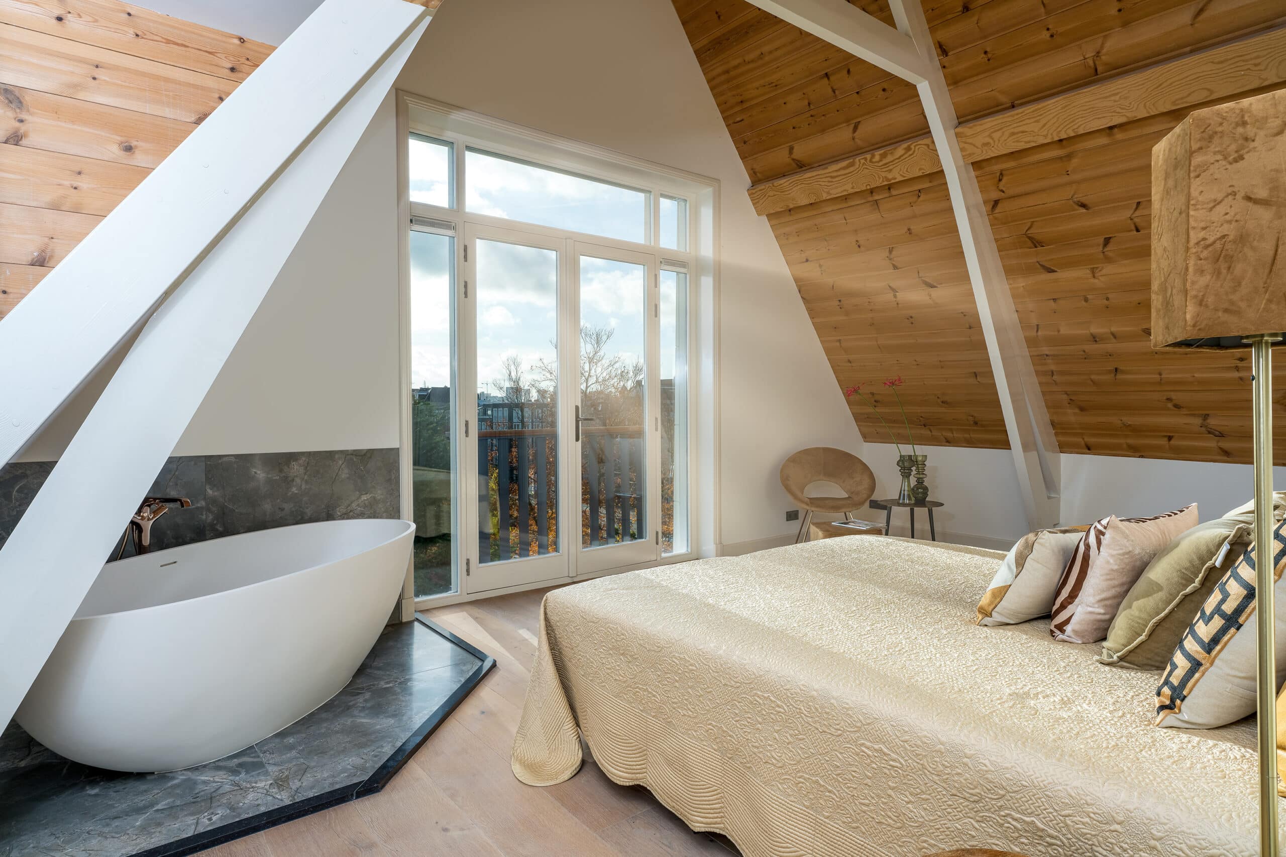 The apartment was recently stripped back completely and was given a new layout. The result is spectacular. Tall ceilings (ca. 3.50m) and many windows make this a bright and airy apartment. Beautiful illuminated stairs lead to the top floor. This may well be the most characteristic of all of the levels in this exquisite building! The commanding nearly 4.60m tall ceilings, with exposed beams lend the spaces the look and feel of a loft. The master bedroom, at the rear, is akin to the most opulent hotel suite… a park view, a free-standing bathtub and an en suite bathroom! In the (bed)room at the front, the two circular windows stand out at once – giving this room a personality all its own. The middle room is the smallest, but still good-sized. These two rooms share a bathroom. Of course, this level also includes a laundry room and a separate restroom. The entire apartment is fitted with wooden flooring with comfortable underfloor heating an beautiful wooden window frames with double glazing. It’s truly extraordinary that a building that dates back to 1893 was awarded an energy label A? Which means that the insulation standards couldn’t be any better. The stately building itself was recently legally divided into three apartment rights. Naturally, the property meets all the building code and quality requirements that were needed to obtain the permit for this division. The foundation has been restored, the basement slab was double-checked, as were the roof and facades. The ceilings and walls are insulated. In short: this property also checks all the boxes when it comes to less visible matters, those that ae nevertheless crucial to ensuring optimized comfort! Roemer Visscherstraat is a quiet street in elegant Vondelpark Quarter, a stone’s throw from the protected historic canal belt and The Netherland’s most sophisticated shopping street: P.C. Hooftstraat. And last but not least: in the evening, the street is open only to local traffic/residents: unique, and ensuring that there is usually a parking space to be found out front of the building. Schedule an appointment with our office today and we look forward to giving you a personal tour of this magnificent apartment. Please consult our floorplans for the current layout of this home! Measurement Code Of course, all information was drafted by The Agency with the utmost care. However, The Agency is not liable for any unintended omission or inaccuracy, etc., nor for any consequences related thereto. The Agency explicitly establishes that the buyer has a duty to perform due diligence regarding all matters relevant to them, and recommends that the buyer enlists the services of a professional real estate agent to provide support and protect their interests throughout the purchase process. The Agency represents the seller and their interests for the sale of this property. |
