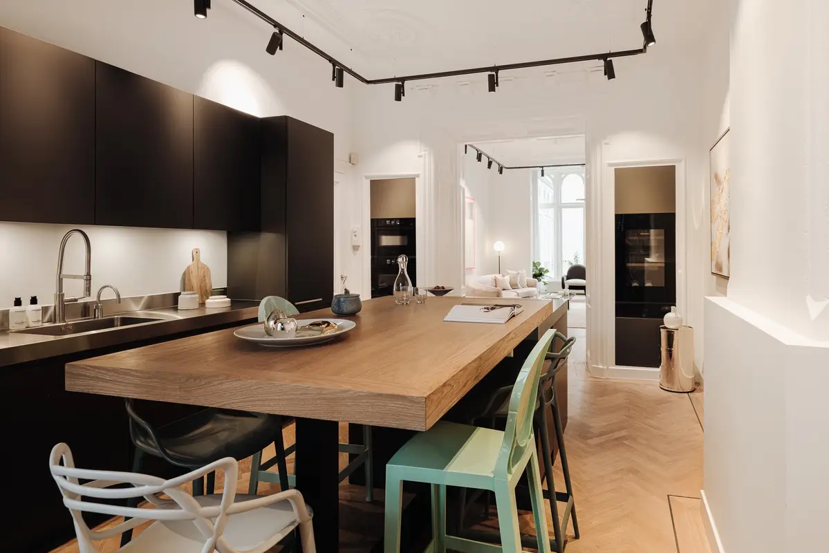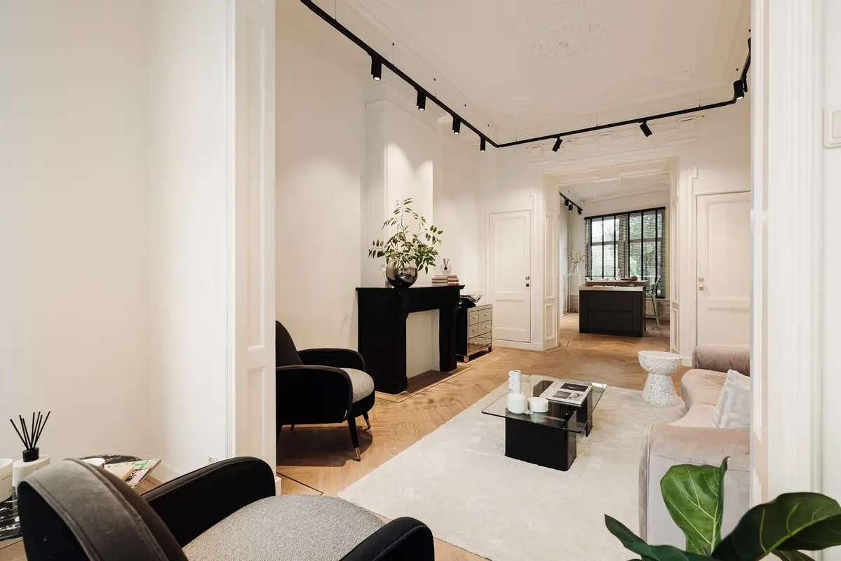 The Agency proudly presents this ground-floor triplex, a freehold property with a total floor area of approximately 194 sqm (NEN survey standards) in Amsterdam Oud-Zuid. The property is a prominent landmark on Eeghenstraat, with its characteristic tower on the roof. The building is in a fabulous location, across from the entrance to Het Vondelpark in the highly sought-after Willemspark district. This ground-floor home was thoroughly renovated to the highest standard in 2020, preserving the property’s original architectural details.