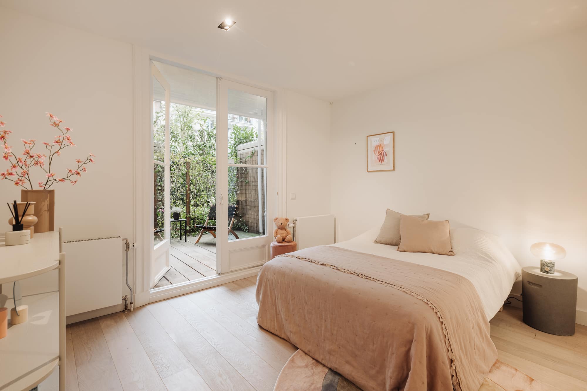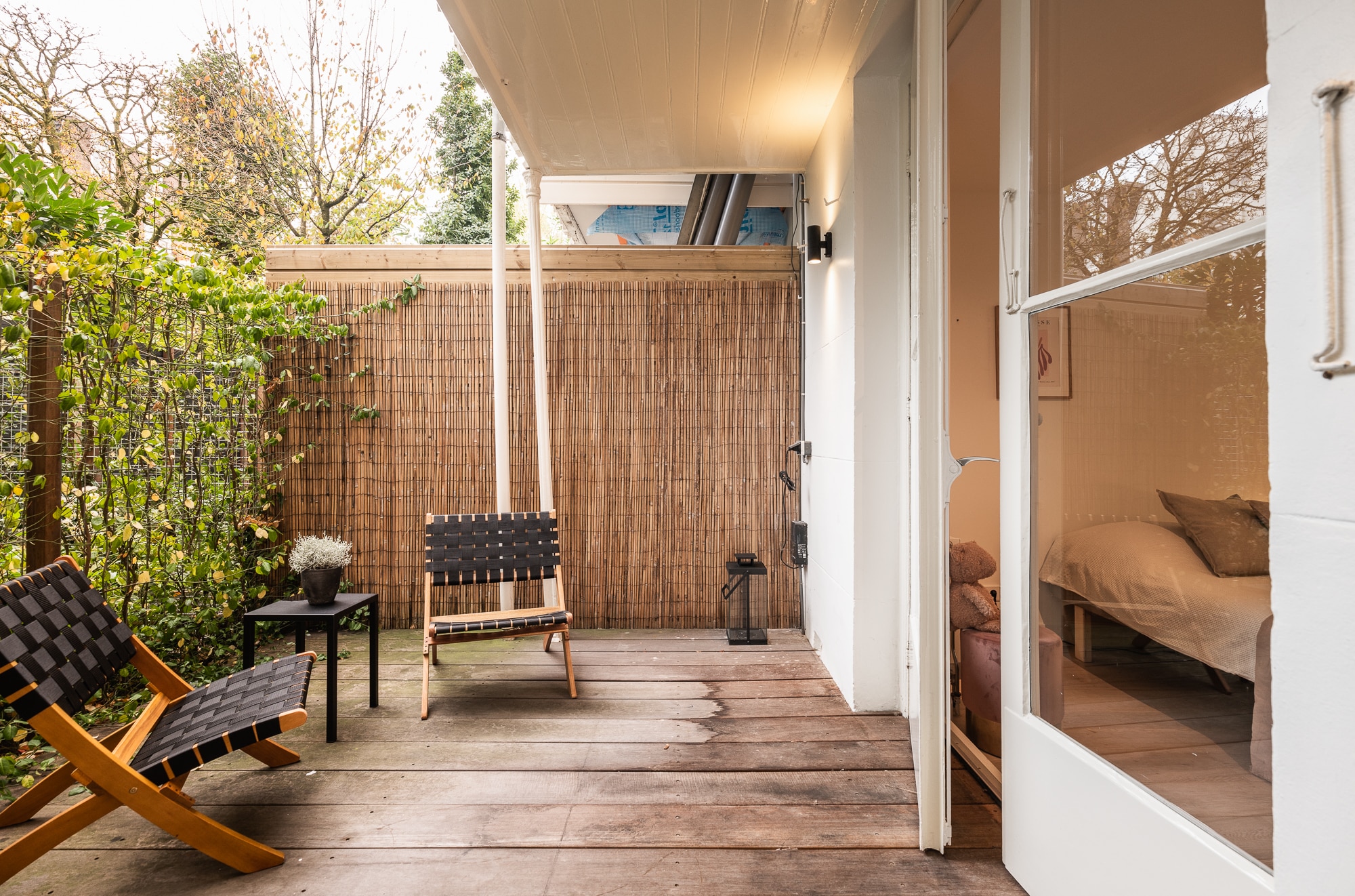 De begane grond geeft ook toegang tot de prachtige aangelegde tuin, eveneens op het Zuiden, van ca. 120m2 en heeft een heerlijk buitenterras en overdekt terras. Door de prachtige bomen waaronder een zeldzame moerbeiboom en een ginkgo biloba vergeet je hier echt dat je in hartje Amsterdam bent! Tuinen als deze zijn inmiddels zeldzaam in Amsterdam omdat bijna overal uitgebouwd en opgebouwd wordt. Dat zou op een bepaalde manier zonde zijn van deze mooie tuin maar het behoort wel tot de mogelijkheden, volgens het bestemmingsplan mag er uit- en opgebouwd worden.