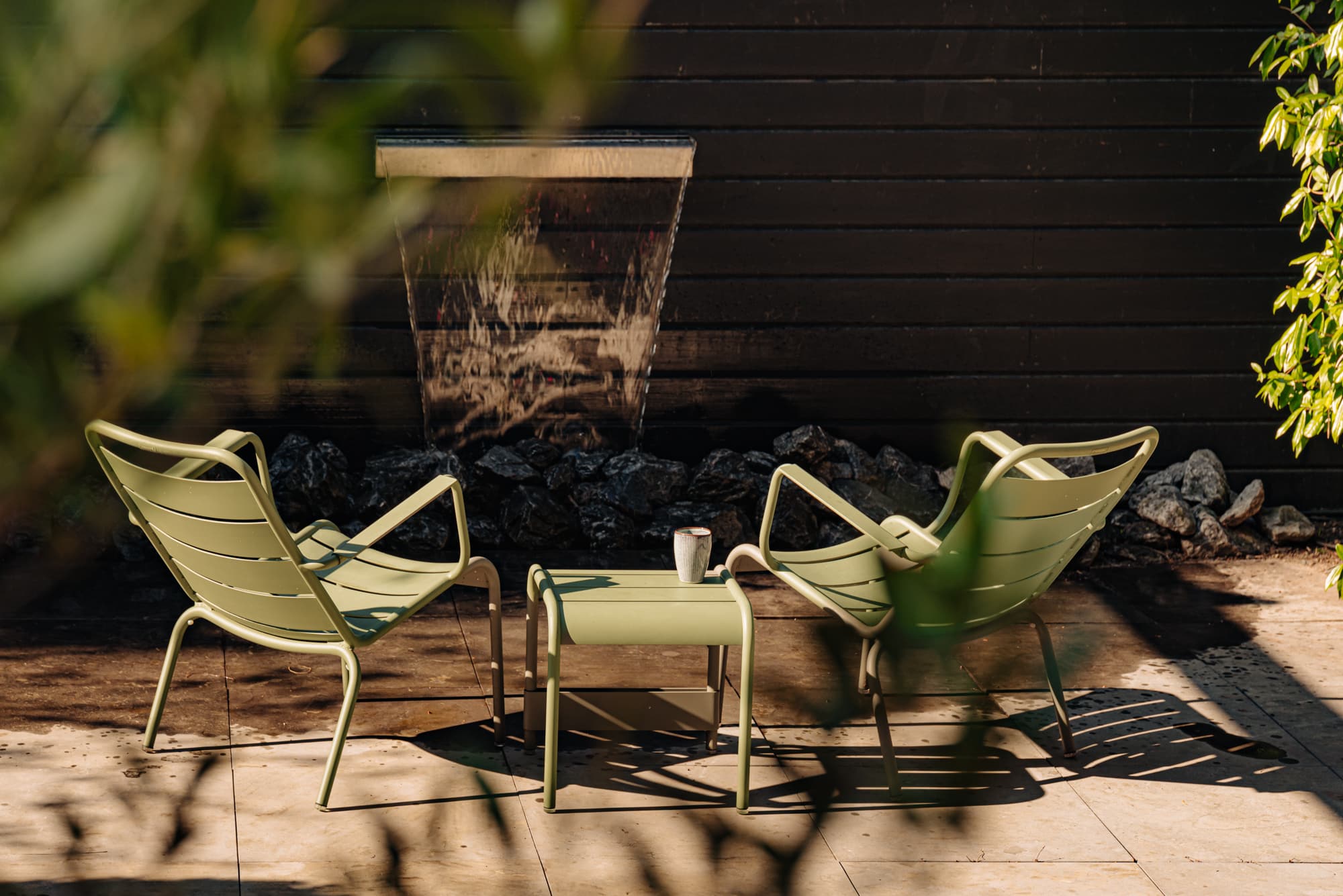 The wide garden can be accessed both from the kitchen and the living room and is a peaceful haven. The garden features several terraces, an enchanting waterfall and a charming wooden garden house for added storage space. On hot days, the canvas canopy offers a cool shady spot to enjoy, and the fireplace by the lounge area is a warm place to unwind