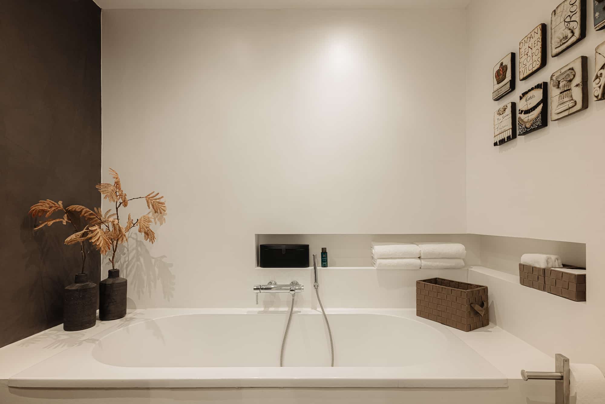 The bath is both elegant and practical, with a large walk-in shower, a fabulous bathtub and a second toilet. Underfloor heating lends extra comfort: no more cold feet ever again!