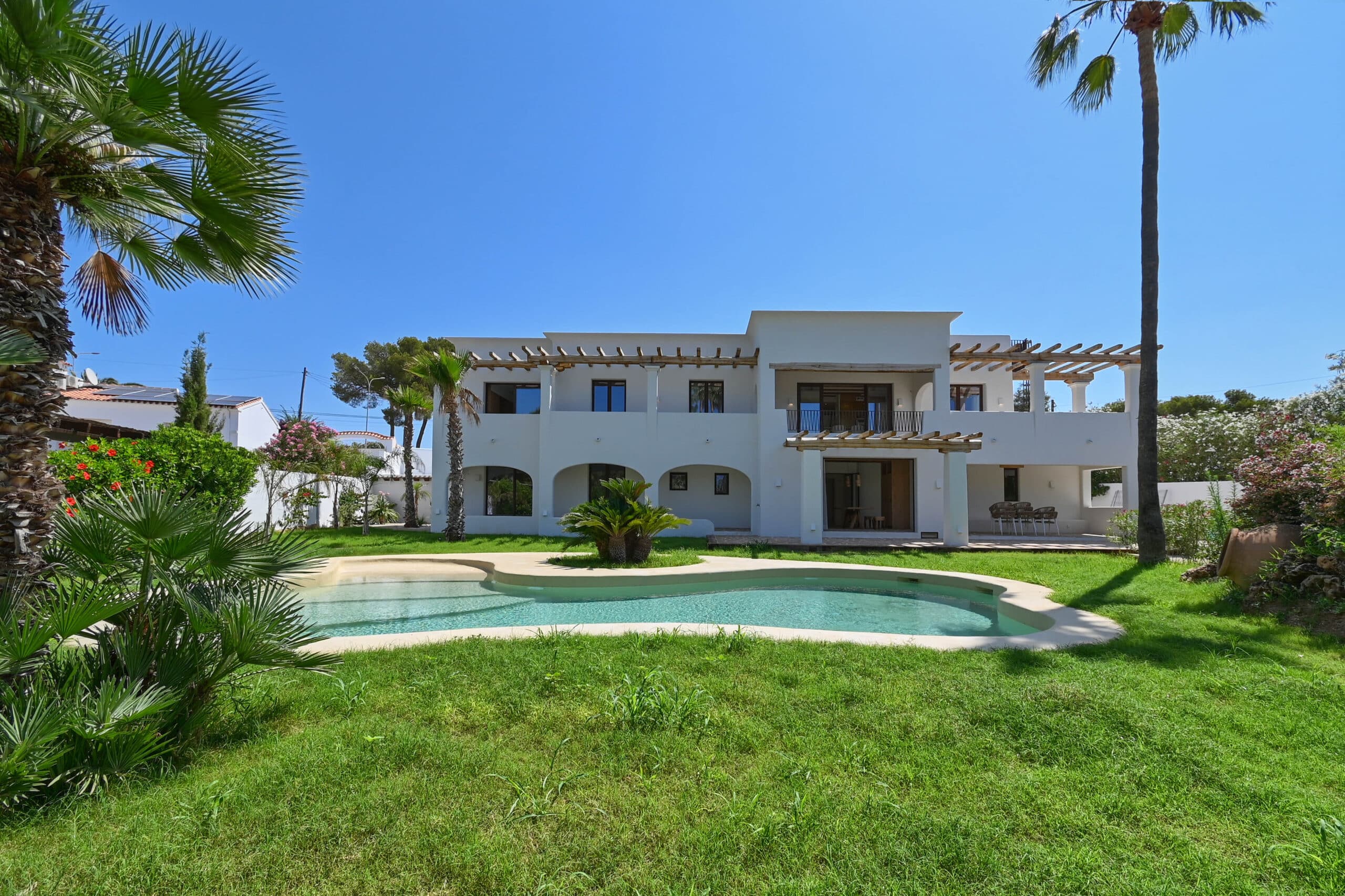 Een zorgvuldig gerenoveerde mediterrane villa in de prestigieuze enclave van San Jaime, waar luxe en kustcharme samenkomen. Dit uitzonderlijke pand is een waar juweeltje, perfect gelegen op loopafstand van de azuurblauwe zee, gastronomische restaurants, chique boetieks en alle essentiële voorzieningen. Op slechts enkele ogenblikken van de beroemde Moraira Golf Course biedt deze residentie de ultieme mix van gemak en verfijning. Het pand is ontworpen en afgewerkt onder het waakzame oog van de Belgische interieurontwerper – Bart de Beule, met de details en afwerkingen in overeenstemming met zijn unieke en gerenommeerde stijl.
