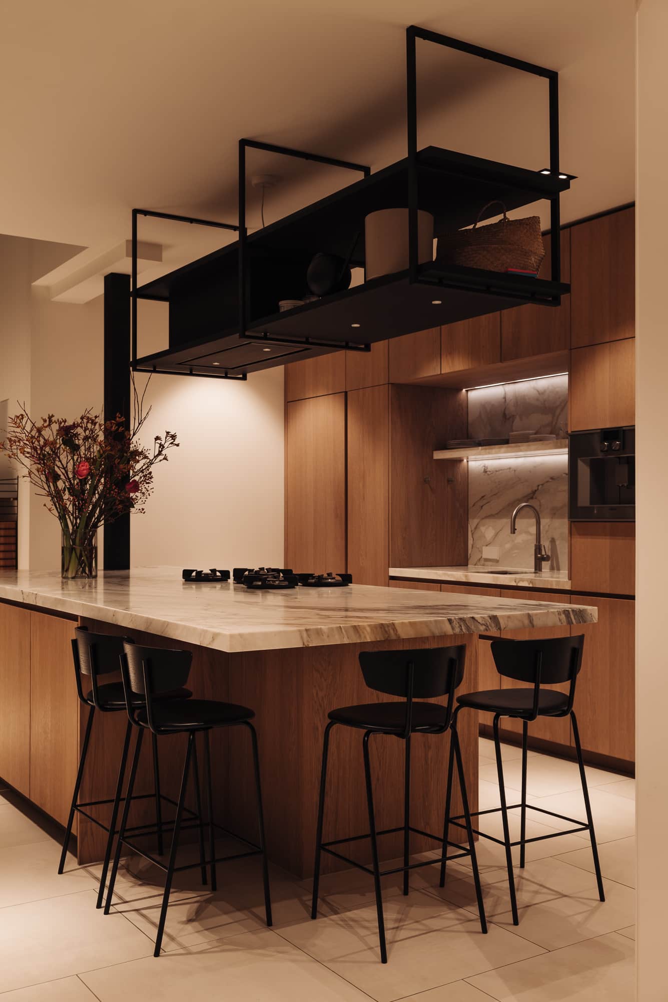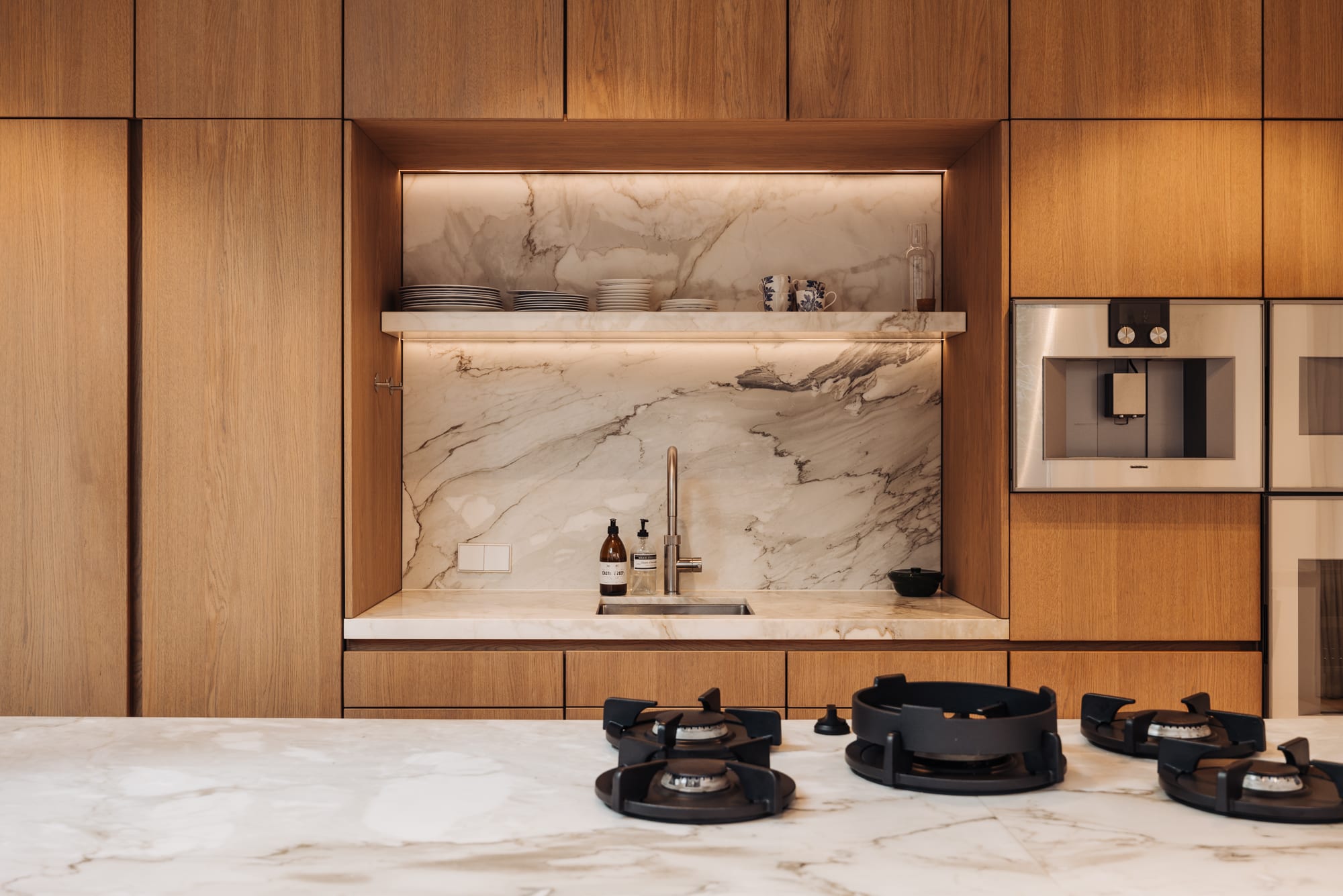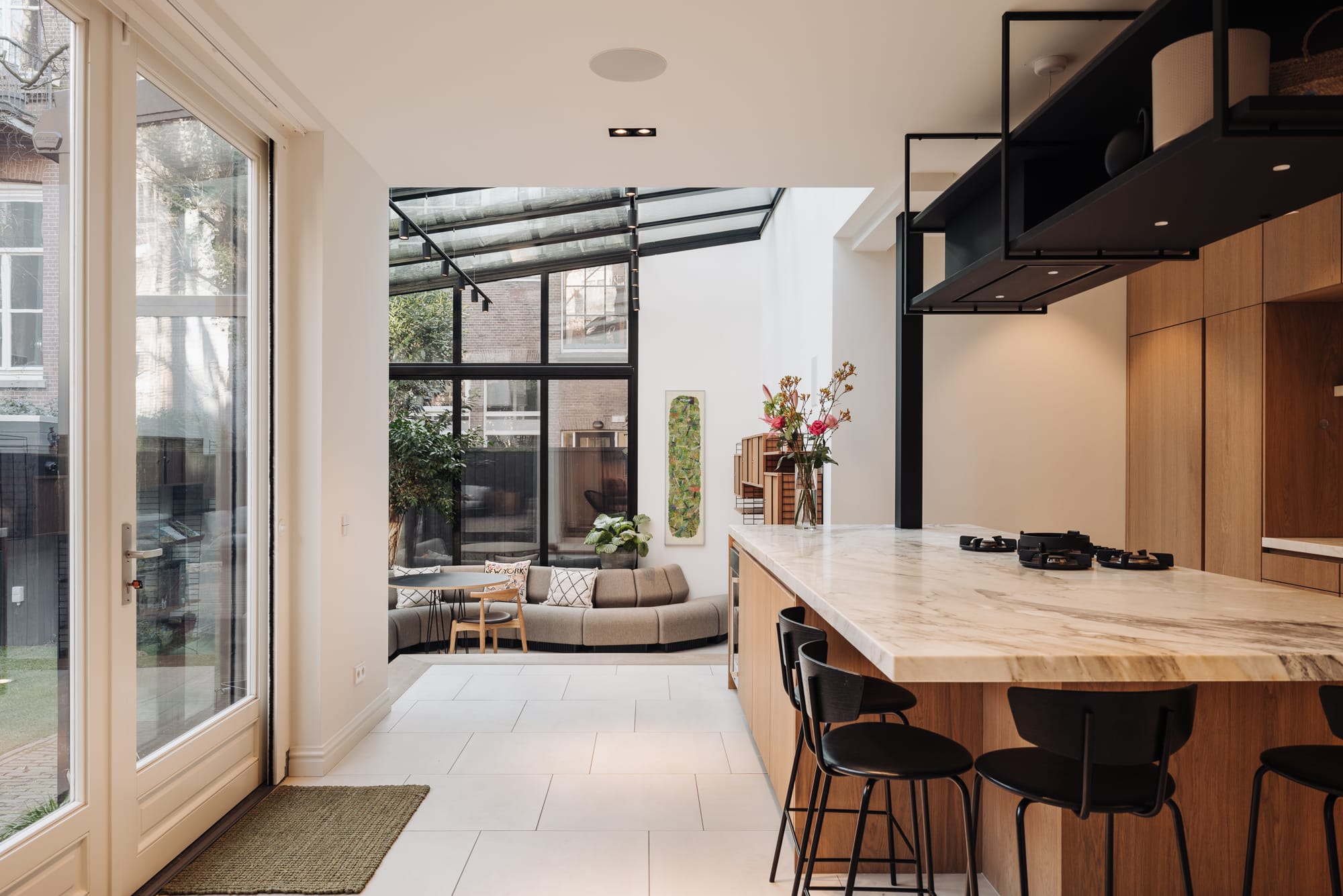 Als u het huis binnenloopt, wordt u vervoerd van de drukte van een van de meest prestigieuze straten van Amsterdam naar uw eigen privé-toevluchtsoord badend in licht en warmte. De eerste verdieping omvat een goede entreehal met op maat gemaakte inbouwapparatuur, een uitnodigend en licht atrium met half bad, meerdere woon- en eetruimtes, een gezellige gashaard en een schitterende serre met kamerhoge ramen (ook op de plafond!) die naast de keuken zit en perfect is voor het ontvangen van gasten of het kijken naar de kinderen tijdens het koken. Op dit niveau dient de oogverblindende keuken als middelpunt en biedt open toegang tot woon-, eet- en serre. Daarnaast heeft u toegang tot de prachtig aangelegde tuin via hoge openslaande deuren bij het extra grote kookeiland, gemaakt van puur marmer. De keuken is geschikt voor een koning en is voorzien van roestvrijstalen Gaggenau-apparaten en een grote oven, koelkast en gasfornuis, wat een zeldzaamheid is in Amsterdam. Er zijn twee vaatwassers voor het gemak, een overvloed aan opbergruimte onder de kasten en een chique wijnkoelkast, allemaal perfect voor een feestje.