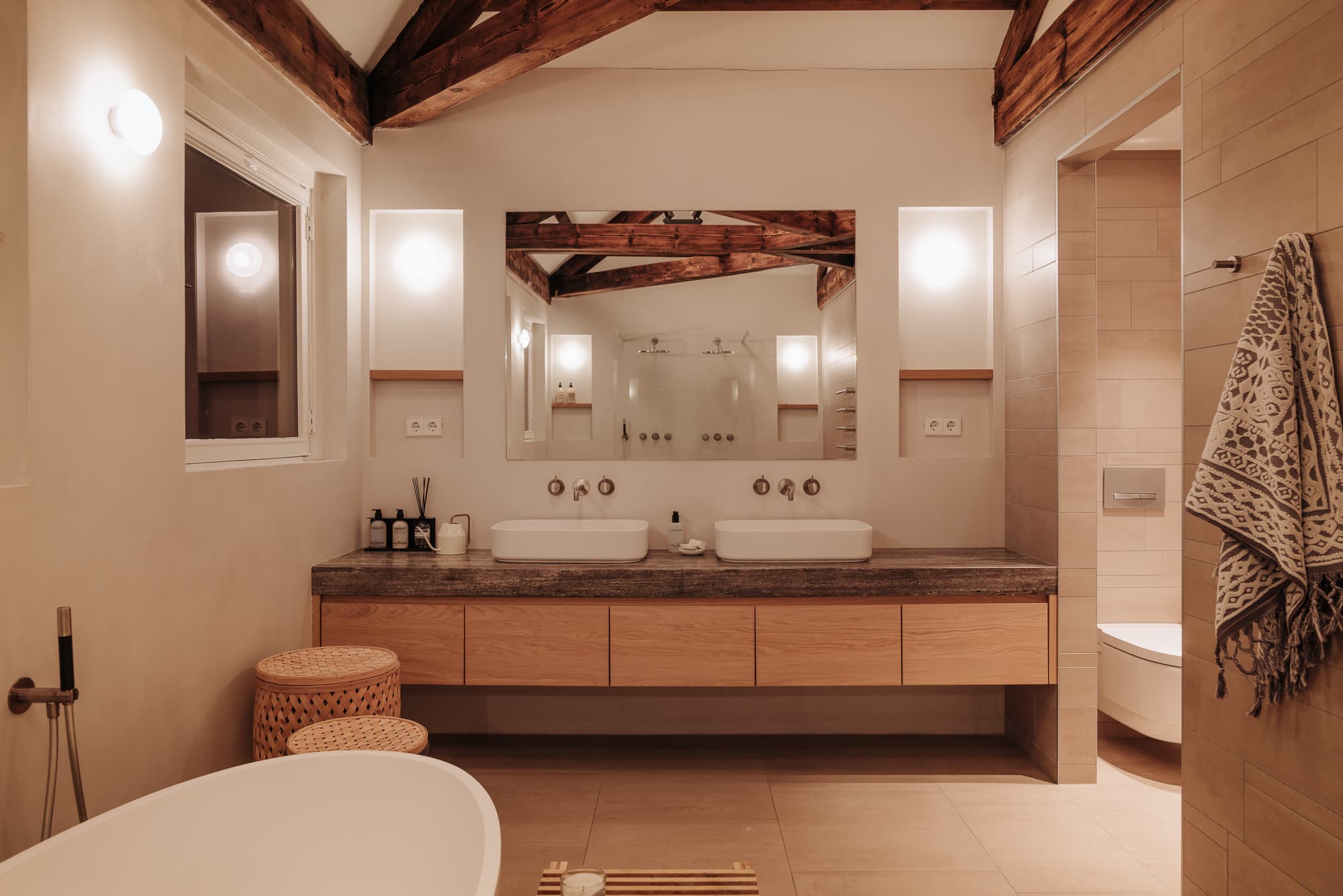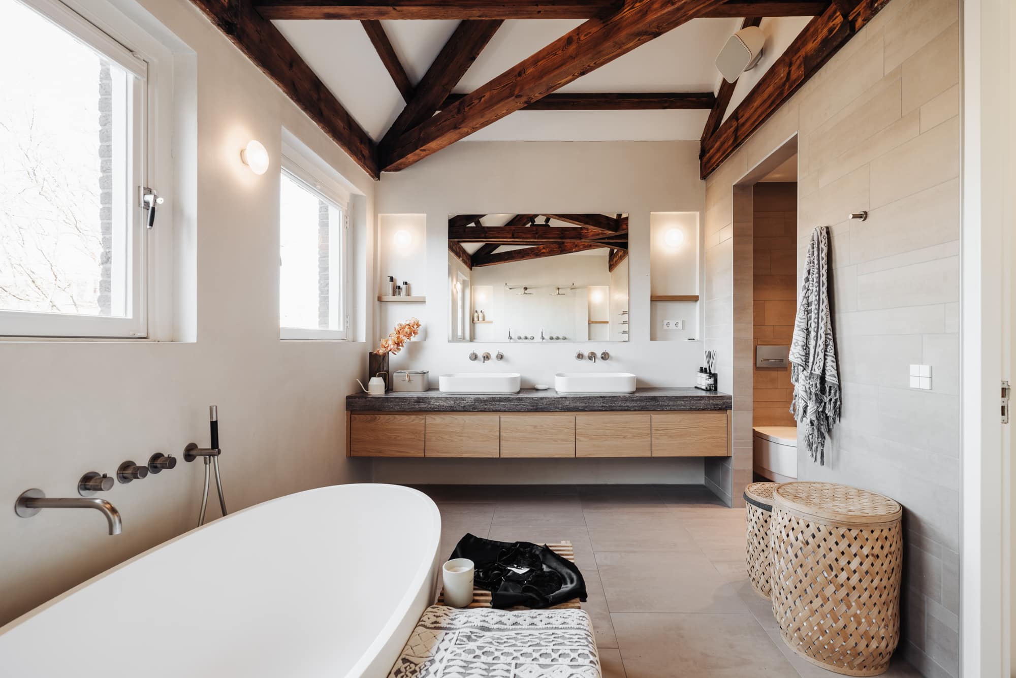 De derde verdieping, met zijn opmerkelijke open balkenplafond, doet dienst als master suite met extra kinderkamer. De hoofdbadkamer met zijn spa-achtige sfeer bevindt zich aan de voorzijde van het huis met heldere ramen, dubbele wastafels, aparte ruimte voor toilet, vrijstaand bad en inloopdouche met dubbele douchekoppen. Tussen de slaapkamer en badkamer vind je een royale inloopkast met op maat gemaakte planken, kasten en mooie wastafel. De hoofdslaapkamer is ruim en heeft aan de ene kant ramen met uitzicht op de tuinen en aan de andere kant op maat gemaakte planken. De bonuskamer heeft een raam met uitzicht op de buurt en is perfect voor een kinderkamer, maar kan op allerlei manieren worden gebruikt.